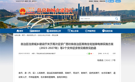 广西住建厅发布:关于再次征求广西壮族自治区既有住宅加装电梯实施方案 (2023-2027年)等2个文件意见的通知